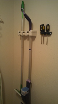 I installed 4 shelves and a few hooks, and voila! Isn’t that better? Now there’s room to place the laundry basket on top of the dryer, plus I can see that I don’t need any more disposable duster refills for a while. Before, everything was so jumbled that I couldn’t take stock of what I had, but now I can do that at a glance.
