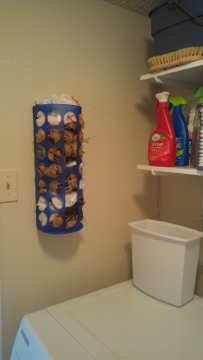 A plastic grocery bag holder/dispenser. This is a great spot since our laundry room is right off the kitchen.